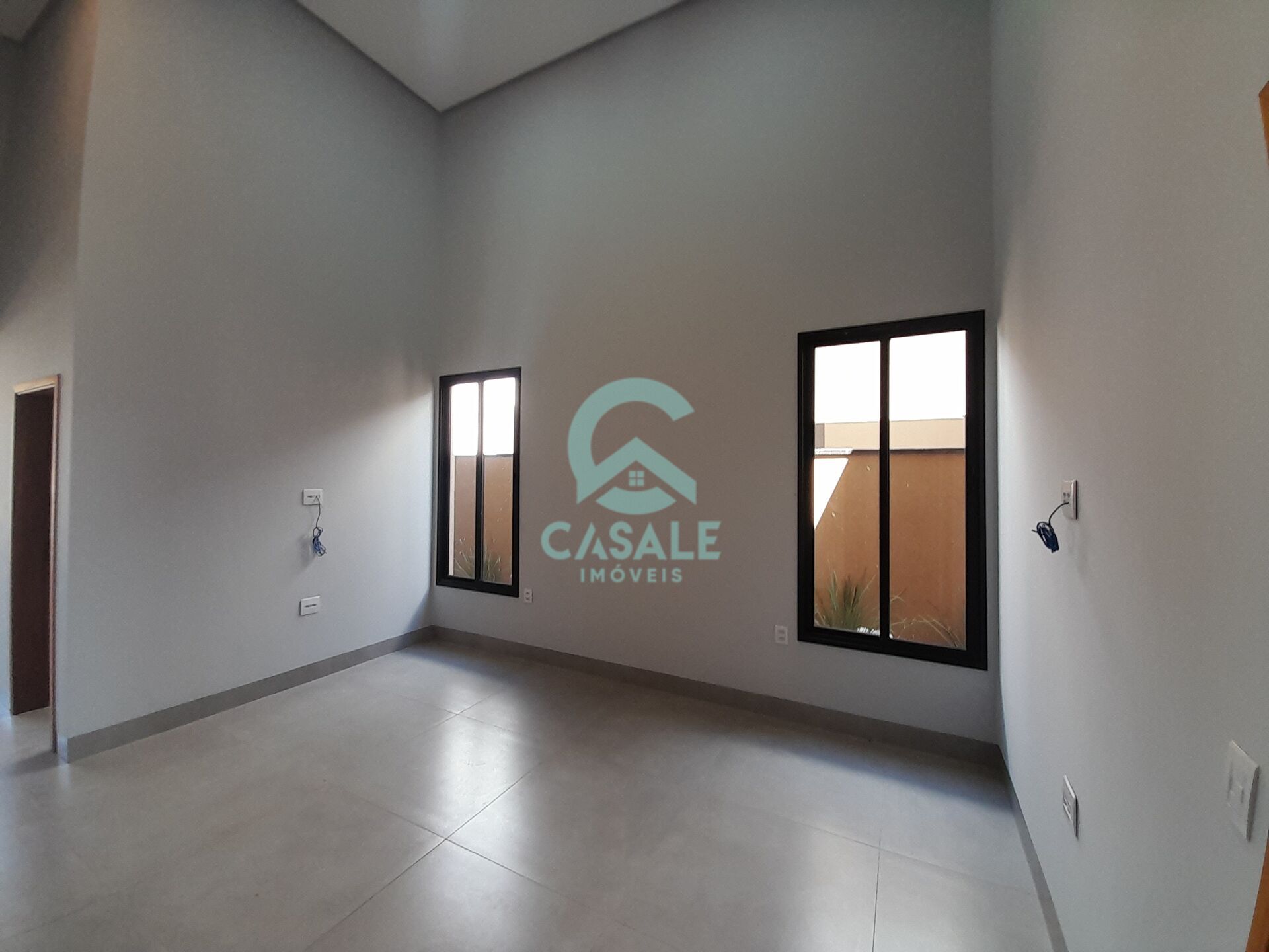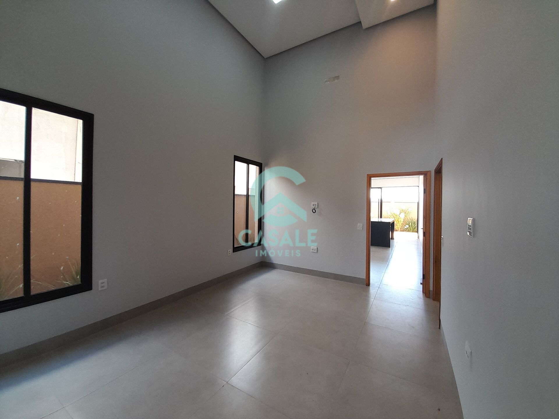 Sala ampla com pé direito alto.