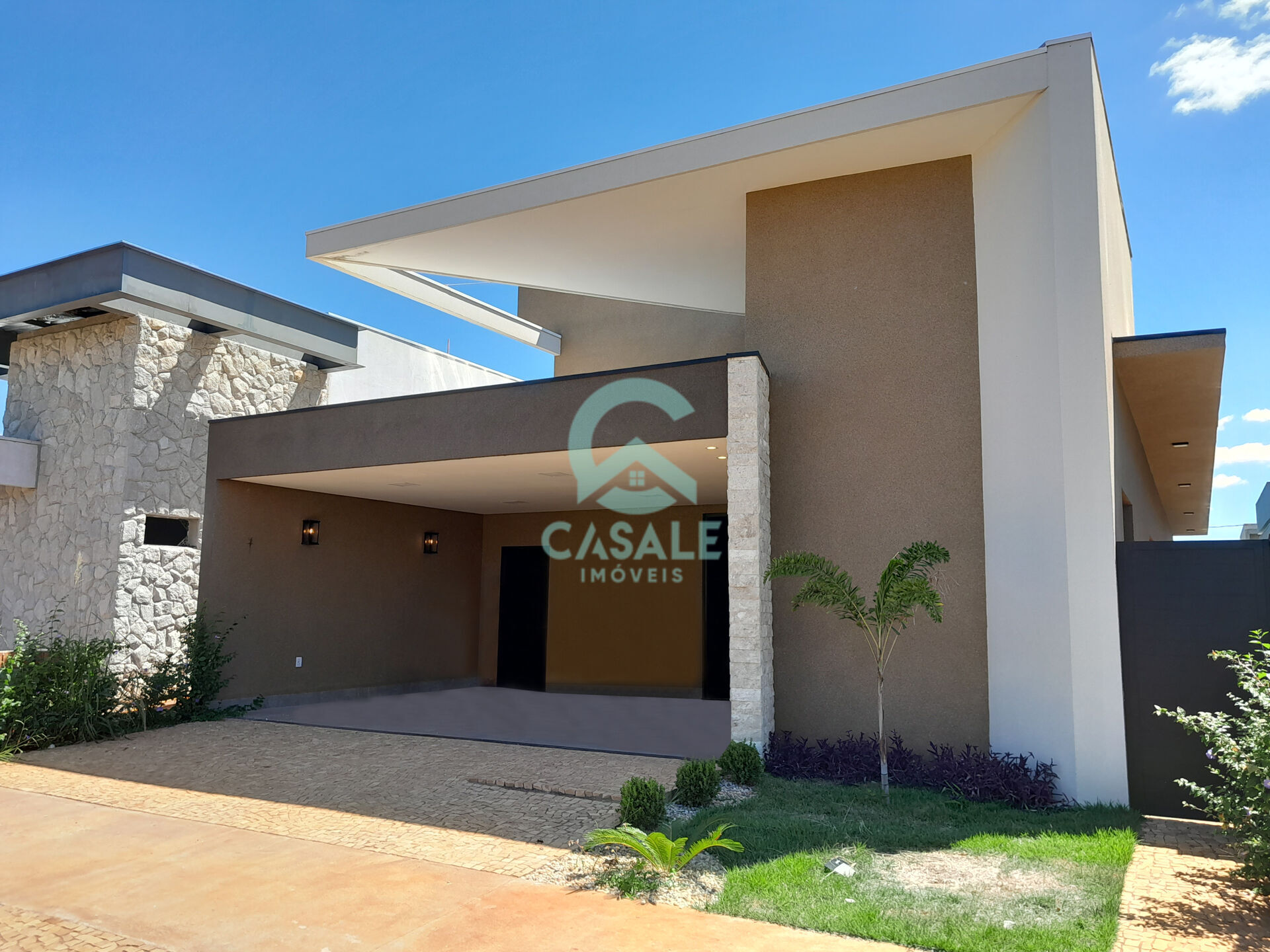 Casa térrea em condomínio fechado, com fachada moderna e projeto muito bem executado, dispondo de: